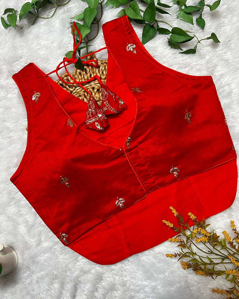 Brighten your ensemble with this Orange Vichitra Silk Embroidered Blouse, crafted with rich silk fabric and elegant embroidery. Perfect to pair with sarees or lehengas for festive and special occasions.