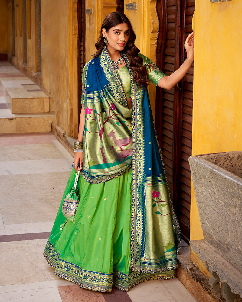 Parrot Green Color Soft Silk Paithani Lehenga Choli