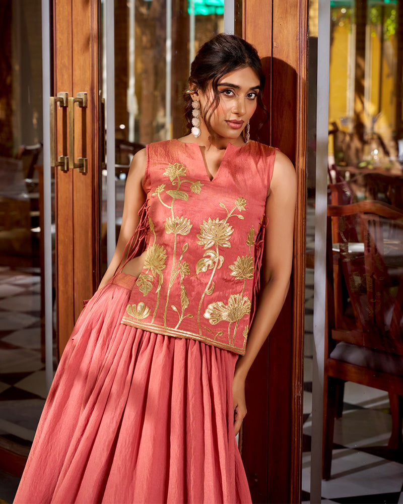 Peach Color Pure Shimmer Embroidered Lehenga Choli