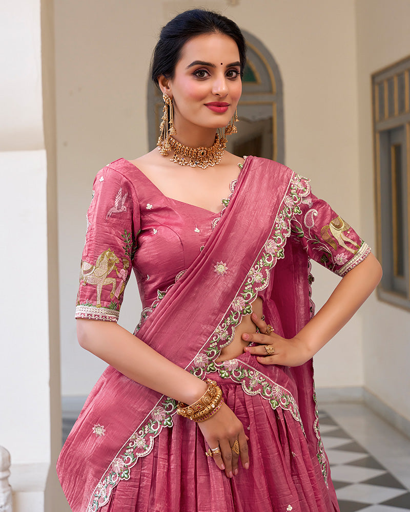 Pink Color Gold Crush Embroidered Lehenga Choli