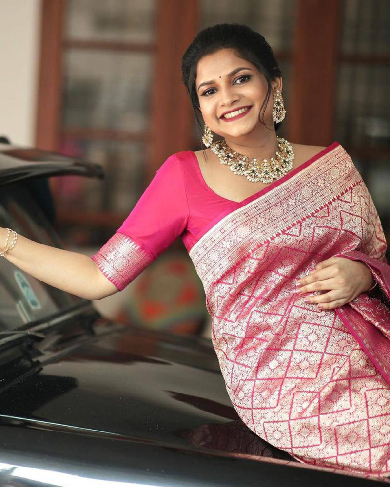 Pink Color Jacquard Print Banarasi Soft Silk Saree