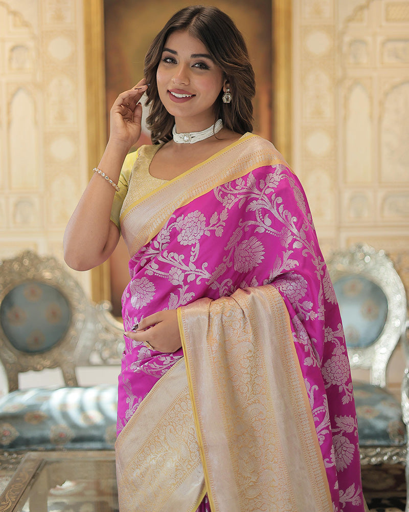 Introducing our Pink Color Kanjivaram Soft Silk Saree with Unstitch Blouse, a timeless piece perfect for weddings and special occasions. This saree features luxurious Kanjivaram soft silk in a vibrant pink hue, showcasing intricate weaving and traditional motifs. The ensemble includes an unstitch blouse, allowing for a customized fit. Ideal for making a graceful and elegant statement, this saree blends traditional craftsmanship with modern sophistication, making it a cherished addition to your ethnic wardrobe.