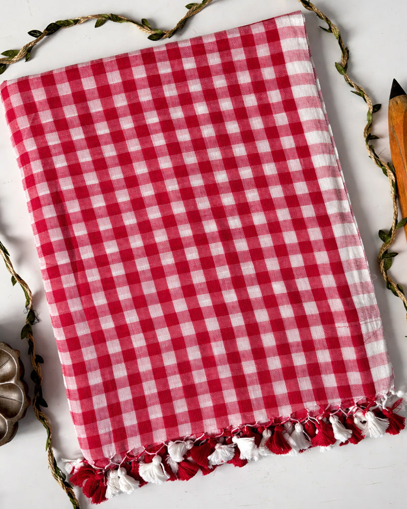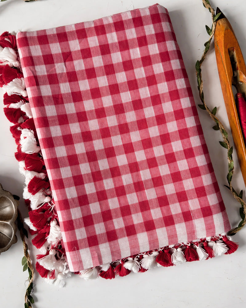 Pink Color Pure Mal Cotton Chex Printed Saree