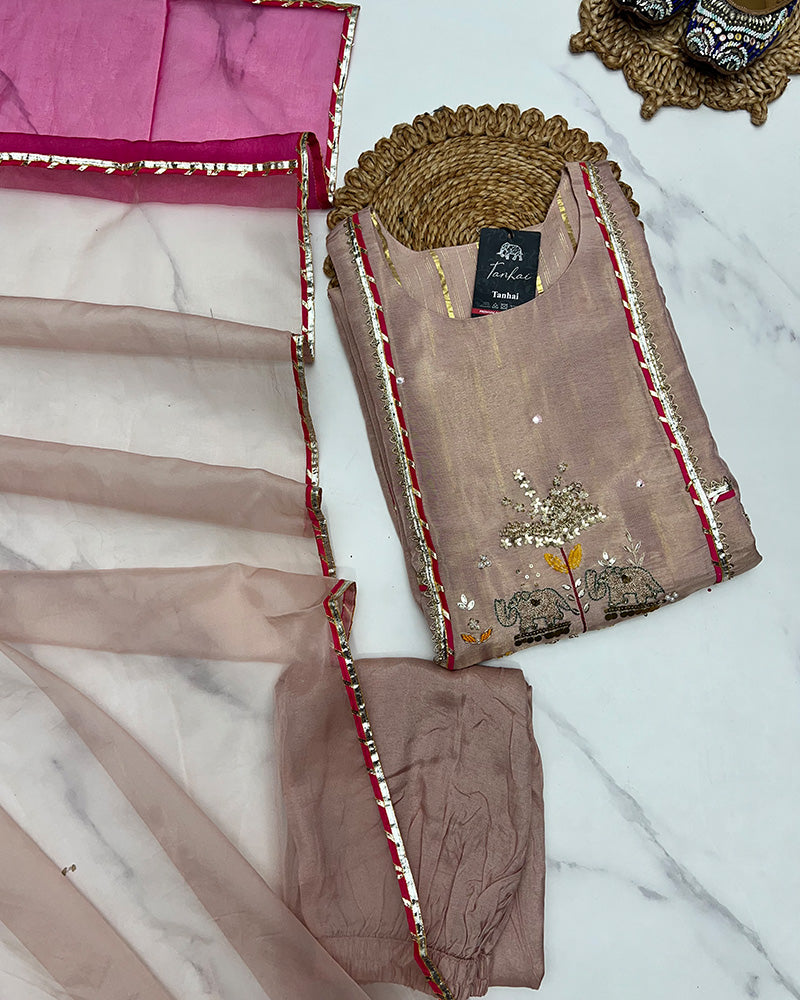 Pink Color Shimmer Silk Three Piece Kurti Suit