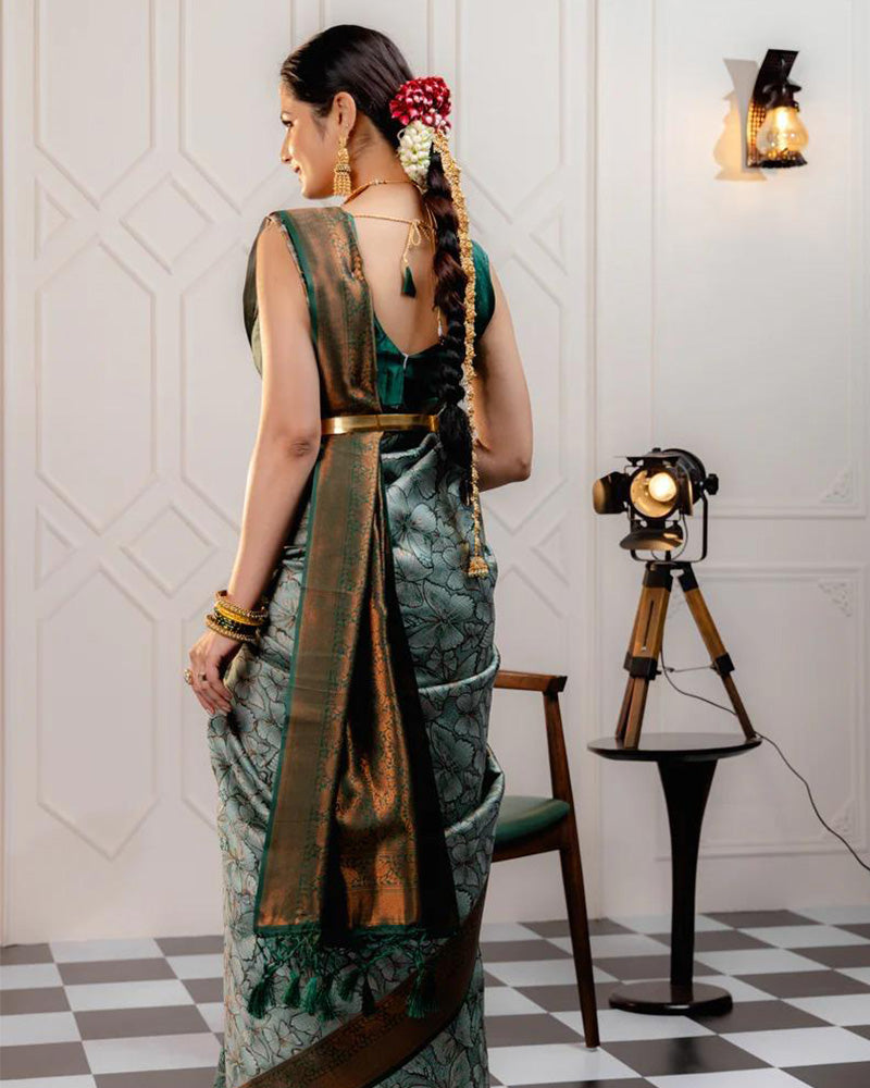 Pista Color Banarasi Jacquard Soft Silk Saree