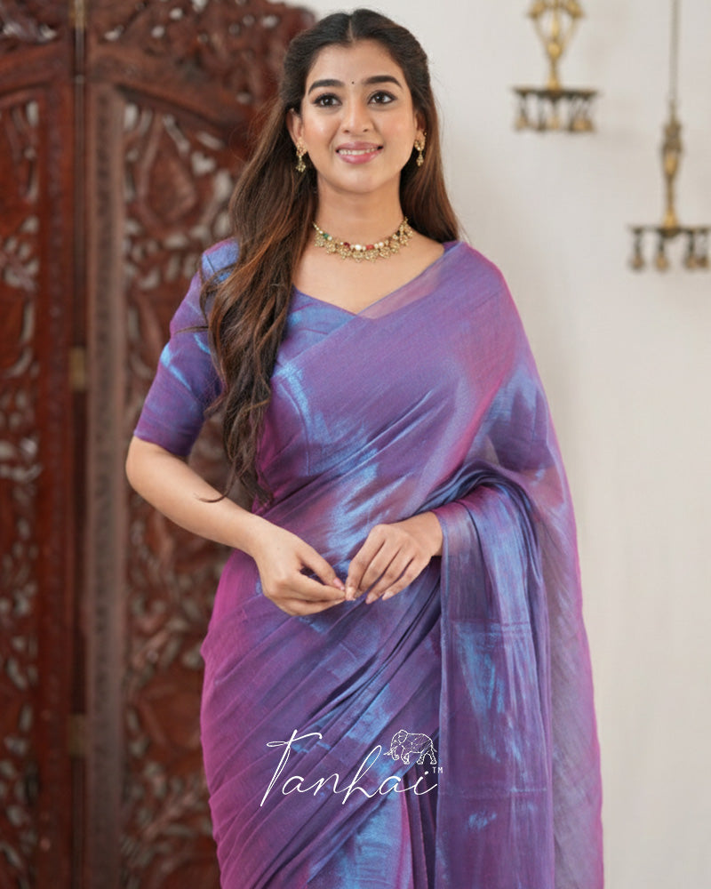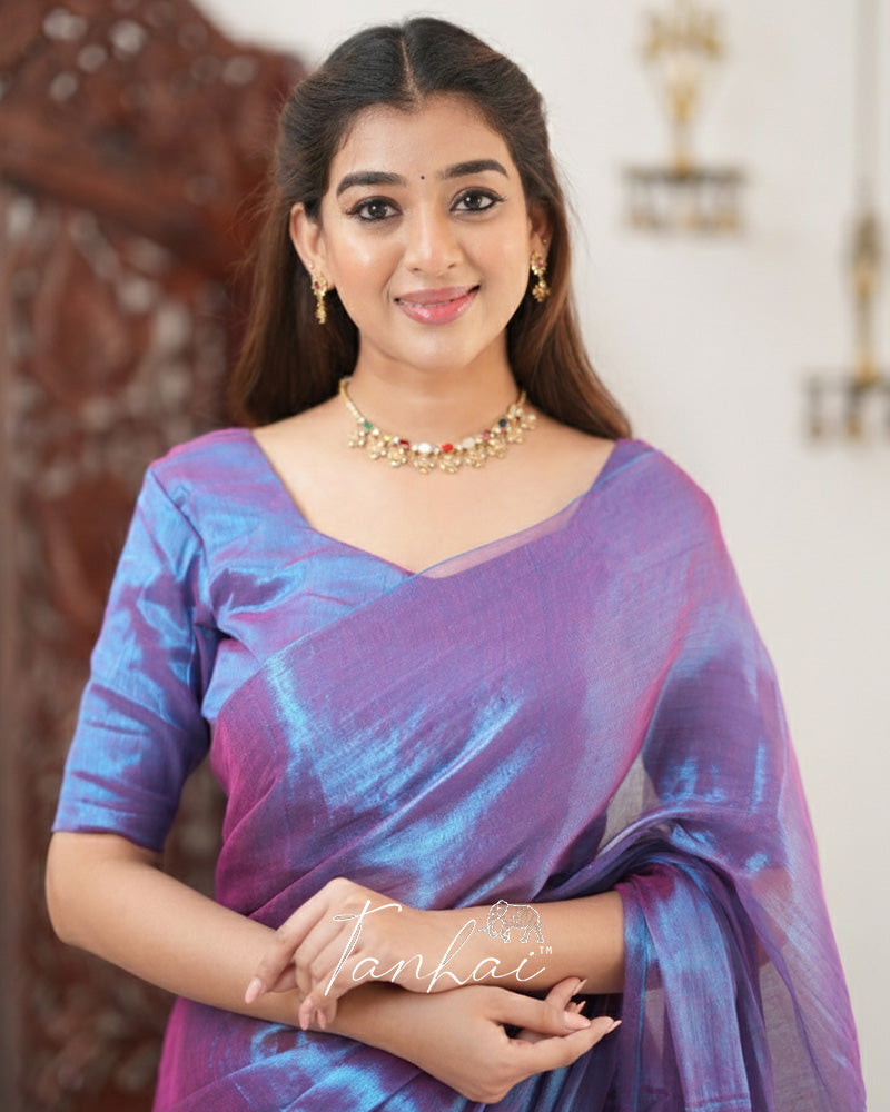Purple Color Handloom Raga Tissue Cotton Saree