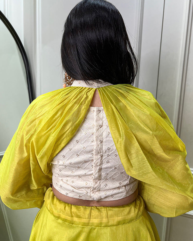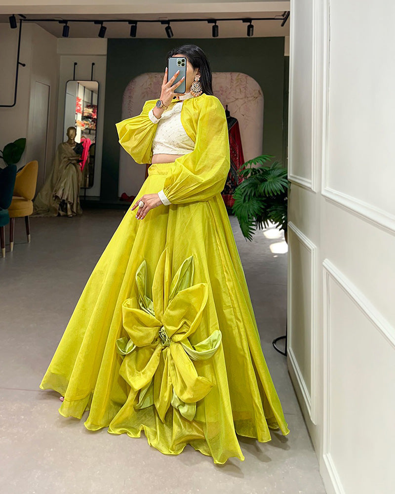 Rajwadi Chanderi Silk Two Color Fully Stitched Crop Top Lehenga Choli