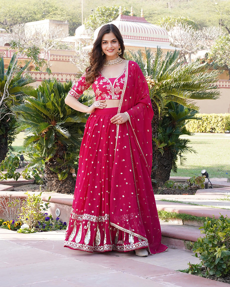Rani Pink Color Sequence Embroidered Faux Blooming Lehenga Choli