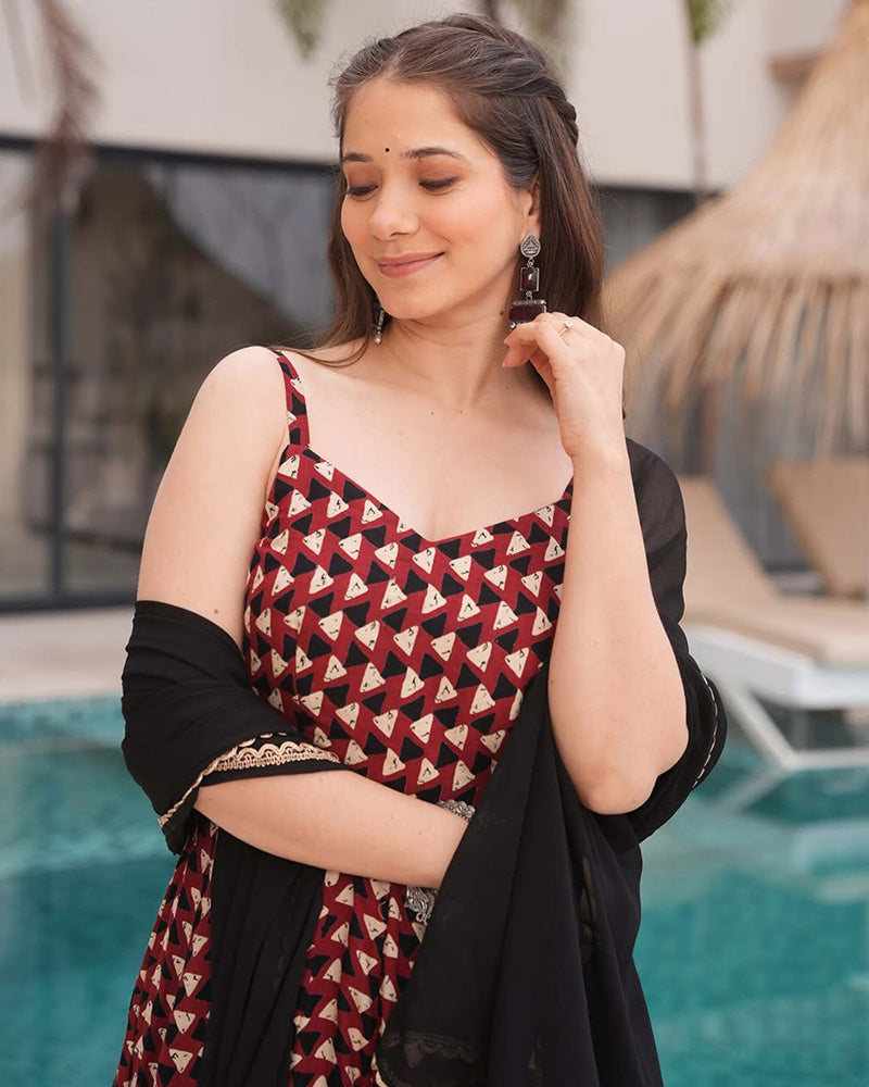 Red Color Triangle Printed Pure Cotton Anarkali Suit
