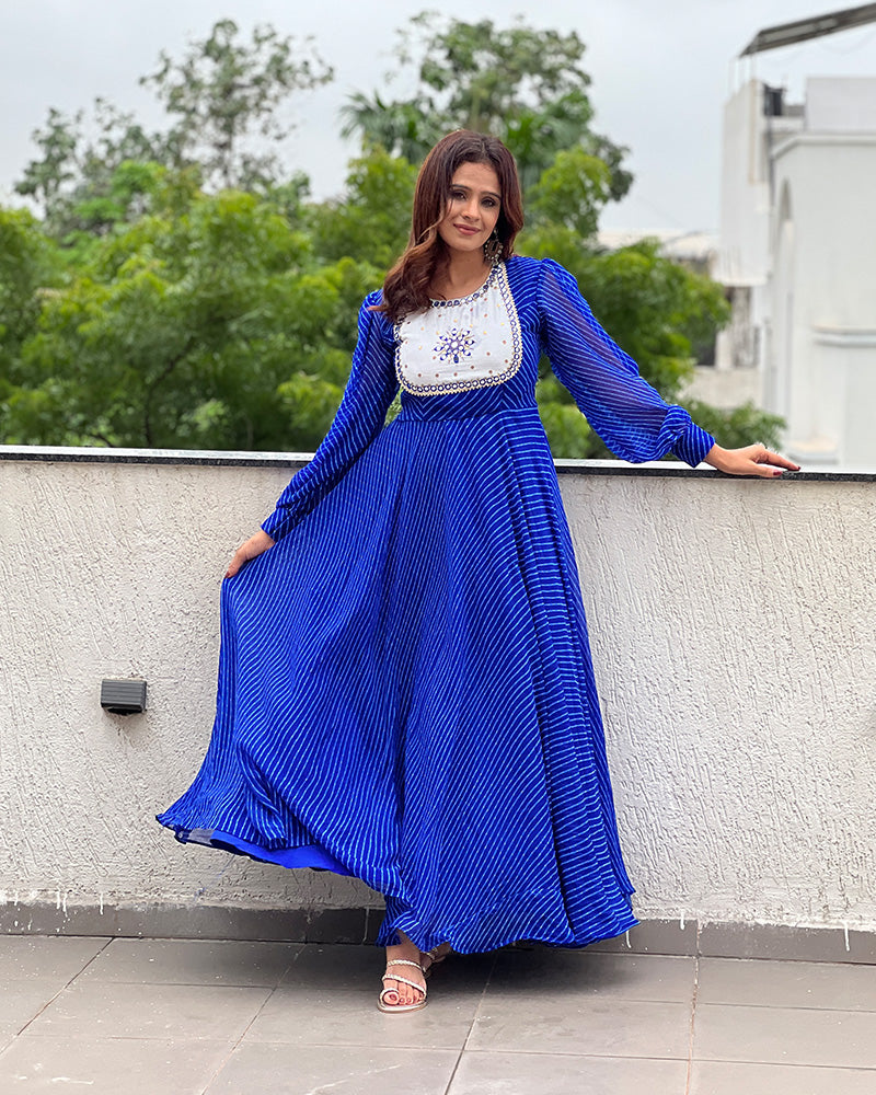 Make a statement in this Royal Blue Georgette Embroidered Gown. Featuring intricate embroidery that highlights its flowing silhouette, this gown exudes elegance and sophistication. The lightweight georgette drapes beautifully, ensuring comfort while you shine at any event. Perfect for weddings, parties, or special occasions, this gown is a stunning choice for those who love to stand out in style.