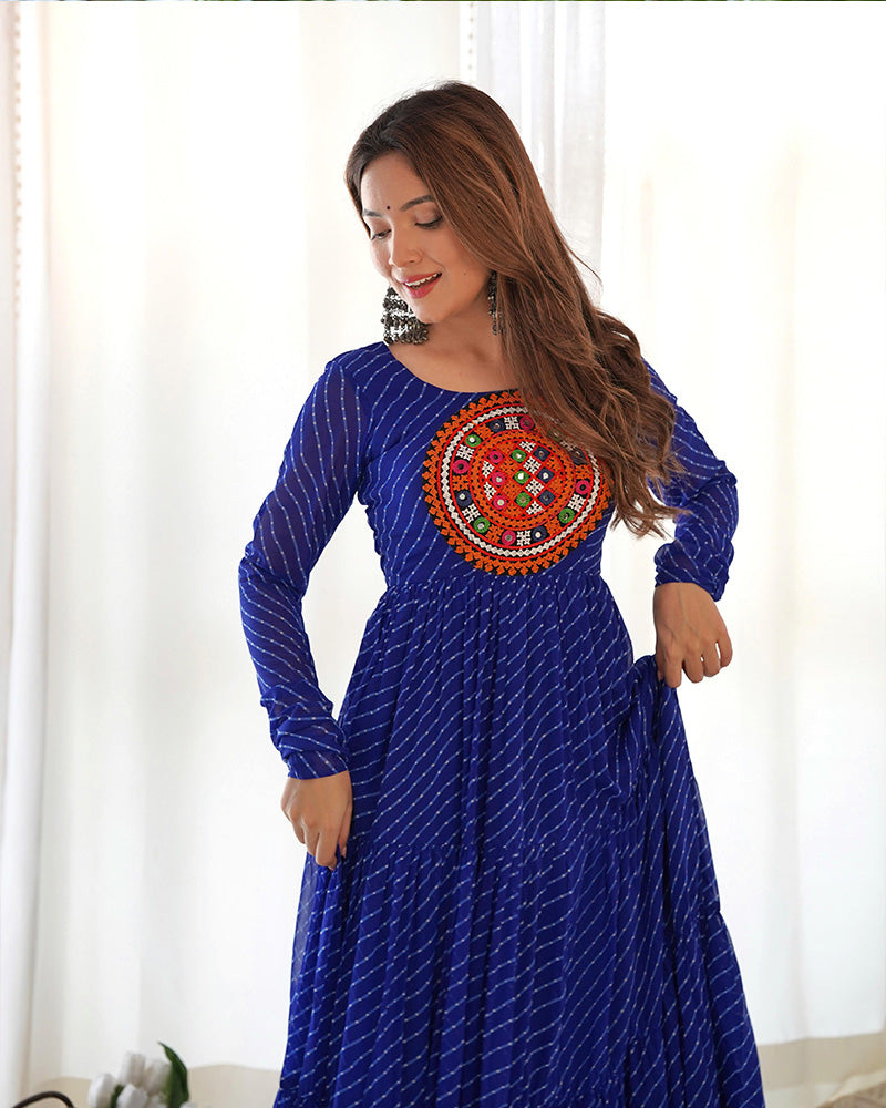 Royal Blue Color Georgette Laheriya Print Navratri Gown