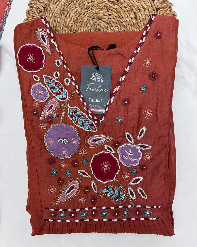Rust Orange Color Mal Cotton Three Piece Kurti Suit