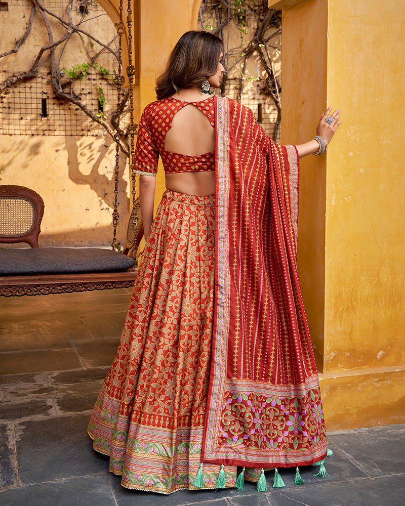 Rust Orange Color Tasar Silk Sparkle Lehenga Choli