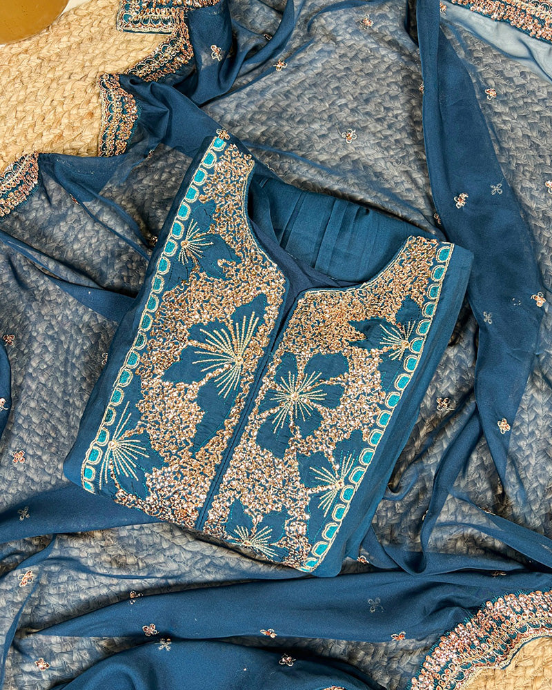 Dupatta Work : 2.3 Meter Organza With Sequins & Thread Embroidered Work