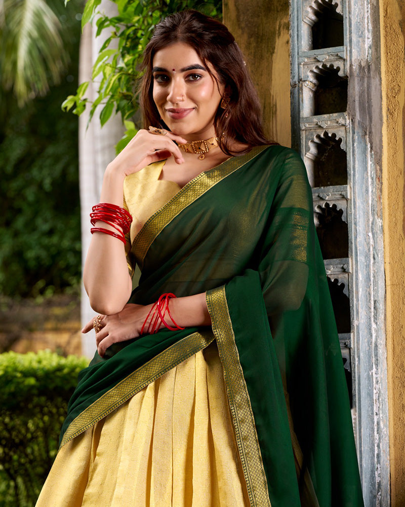 Traditional Green Color Kanchipuram Zari Weaving Half Saree