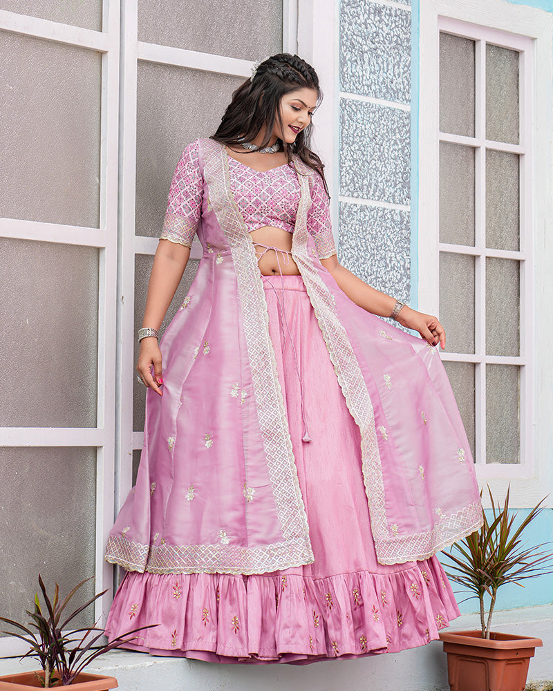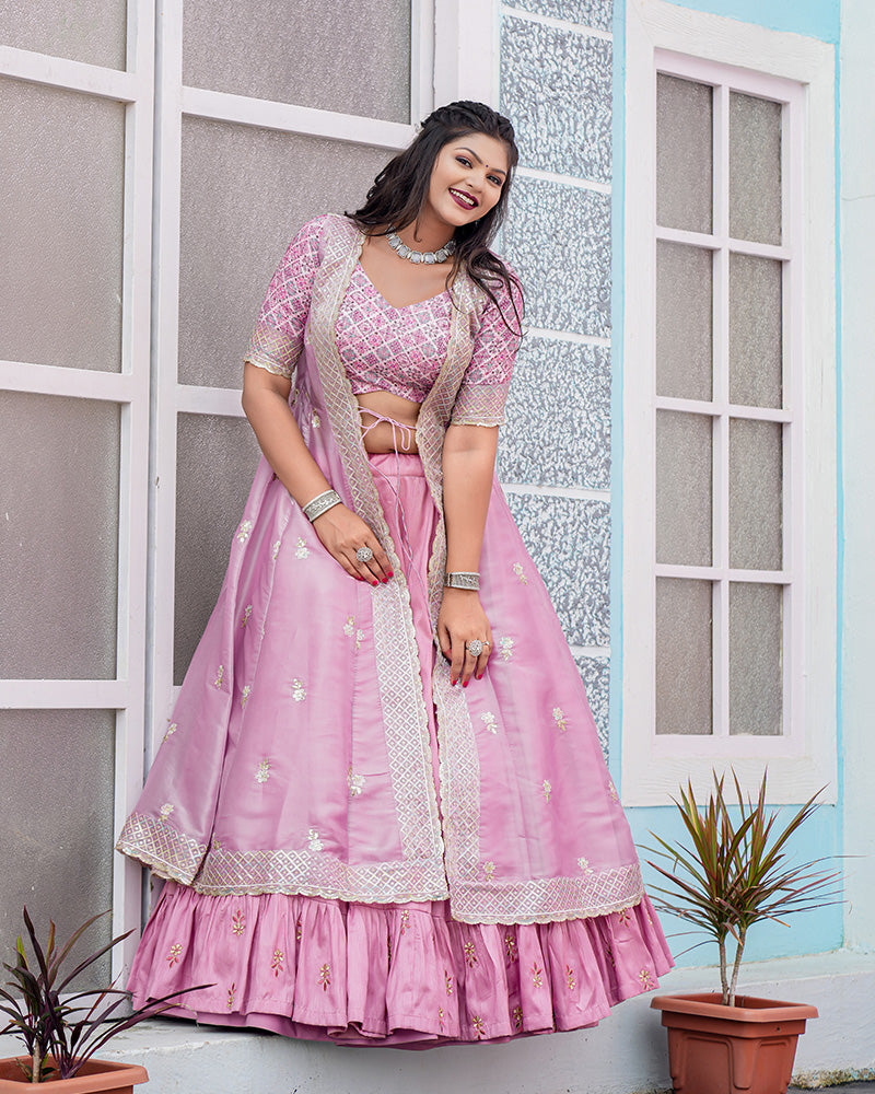 Western Style Baby Pink Color Joya Silk Embroidered Lehenga Choli