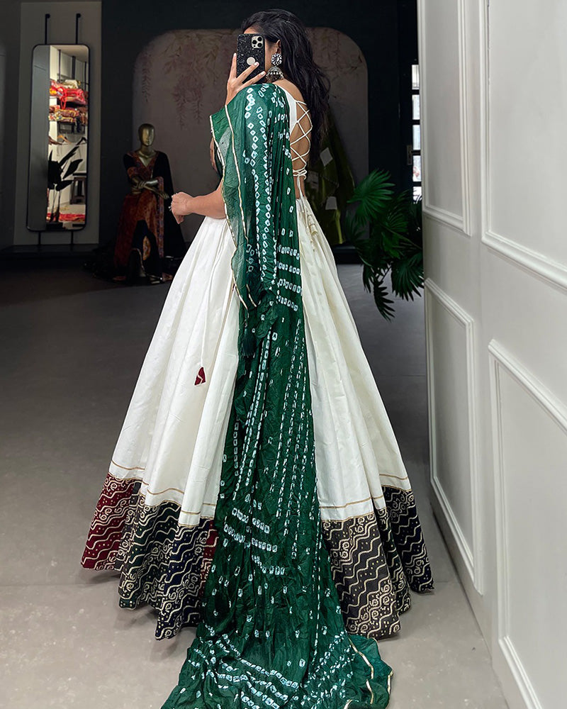 White Color Cotton Printed Navratri Lehenga Choli