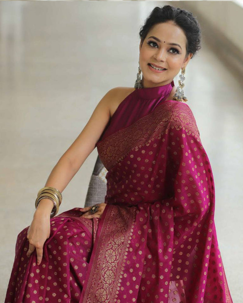 Wine Color Banarasi Jacquard Soft Silk Saree