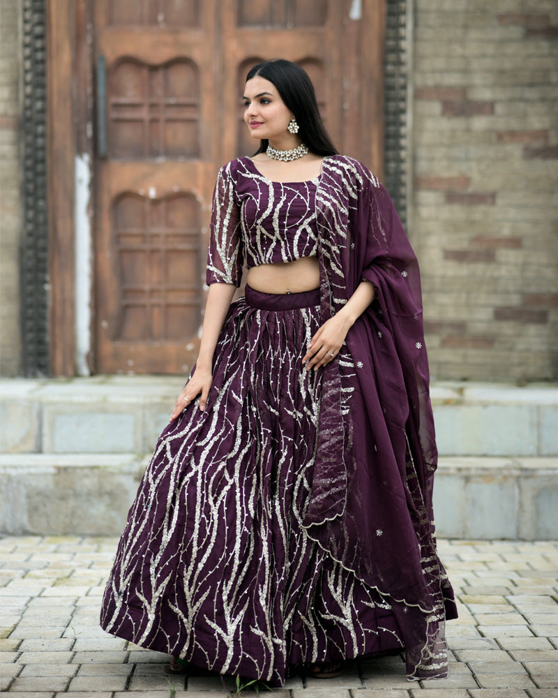 Elevate your ethnic elegance with our Wine Color Designer Tebby Silk Lehenga Choli. Crafted with finesse, the rich wine hue exudes sophistication and glamour. The Tebby silk fabric adds a luxurious touch, draping gracefully for a regal appearance. The lehenga is adorned with intricate designer detailing, enhancing its visual appeal. Accompanied by an unstitched blouse, this ensemble allows for personalized tailoring, ensuring a perfect fit and unique style. Make a statement at weddings, parties, or special occasions with the enchanting allure of this wine-colored Tebby silk Lehenga Choli, designed to captivate onlookers and leave a lasting impression.