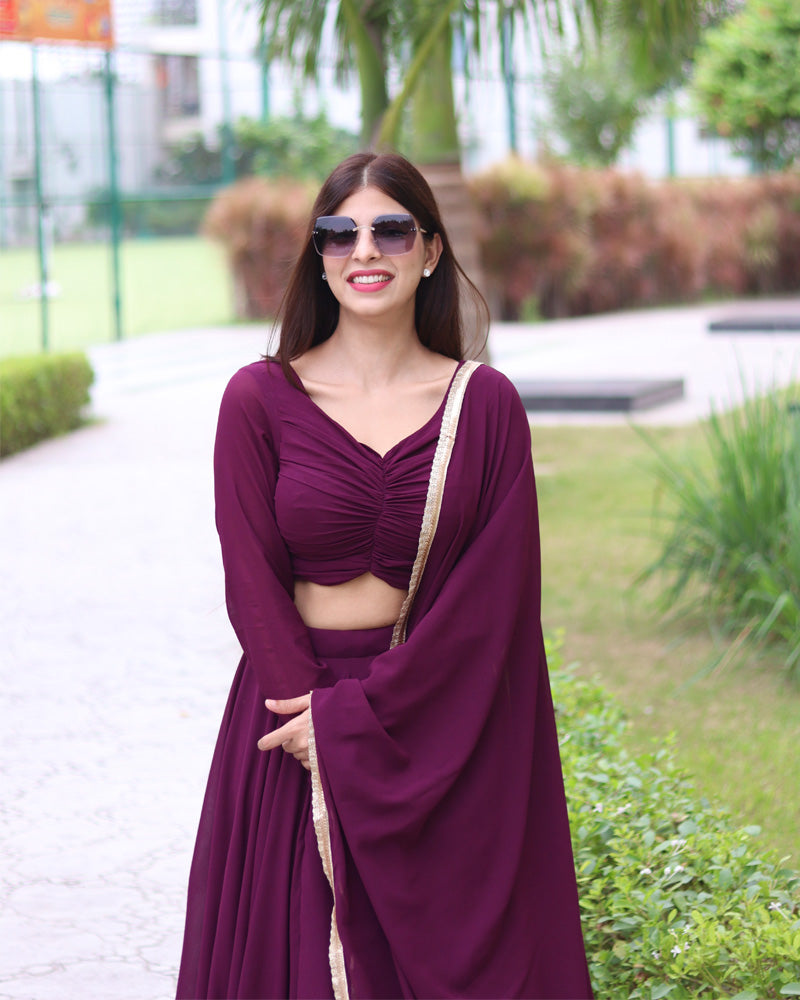 Wine Pure Soft Georgette Full Stitched Lehenga Choli
