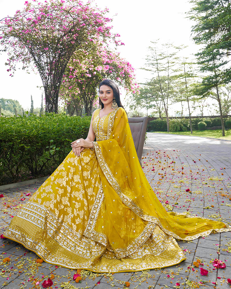 Yellow Color Dola Silk Jacquard Lehenga Choli