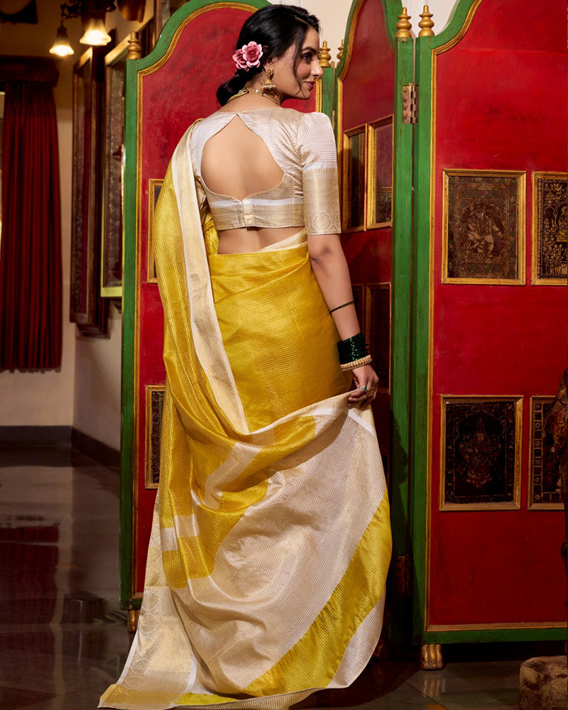 Yellow Color Weightless Jacquard Chex Saree