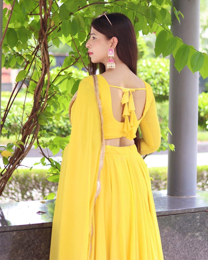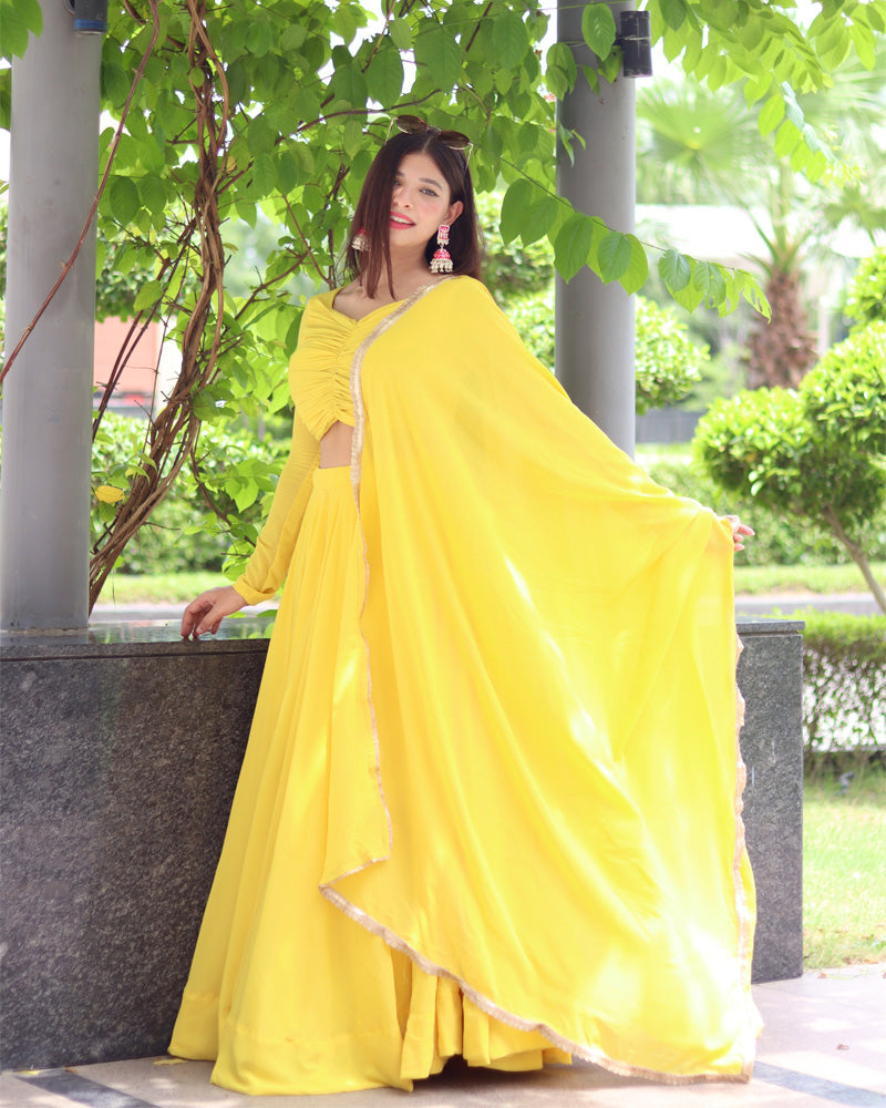 Yellow Pure Soft Georgette Full Stitched Lehenga Choli